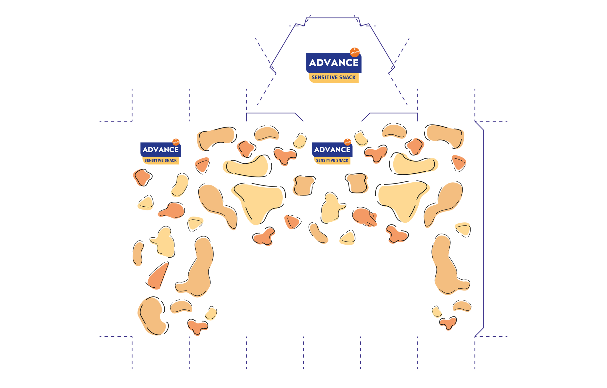 En el modelo actual, extraer el snack implicaba introducir la mano dentro del envase, lo que muchas veces terminaba ensuciándonos. Para resolverlo, el nuevo diseño incorpora una apertura más práctica y limpia: una pestaña transparente que se abre con un suave tirón. Esto permite verter el snack directamente con un pequeño vuelco, sin necesidad de contacto directo.